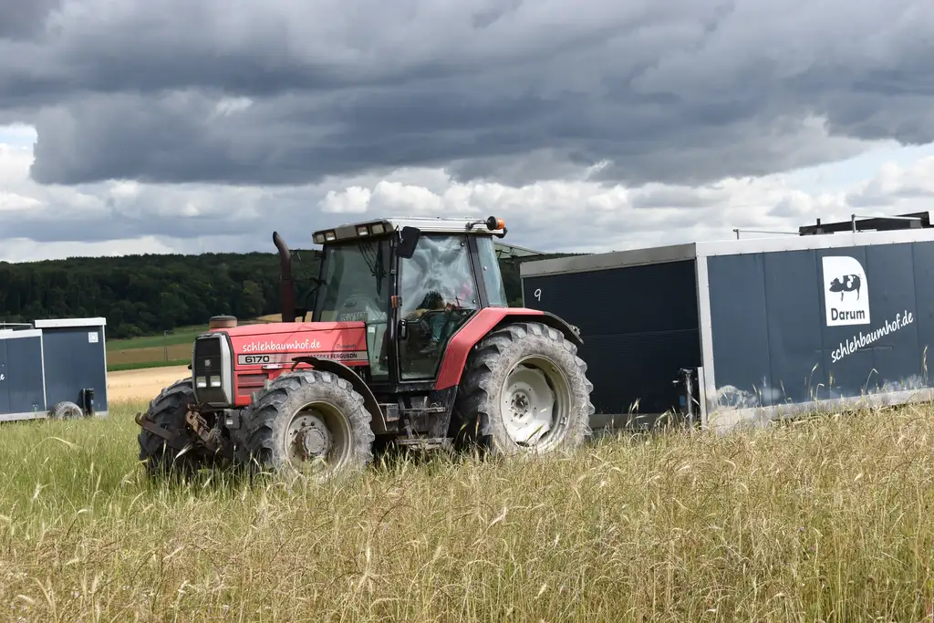 Wir auf dem Schlehbaumhof praktizieren die mobile Auslaufhaltung mit den von uns enwickelten Darumer Schweinemobilen seit 2017. Anhand unserer praktischen Erfahrungen sind die Schweinemobile erprobt und weiterentwickelt worden. Die Darumer Schweinemobile haben in Wintermonaten mit Starkfrösten, in feuchten Frühjahrs- sowie Spätherbstbedingungen und den heißen / trockenen Sommerphasen gezeigt, dass die Mobilstallhaltung ganzjährig für Tier, Mensch und Umwelt umsetzbar ist.