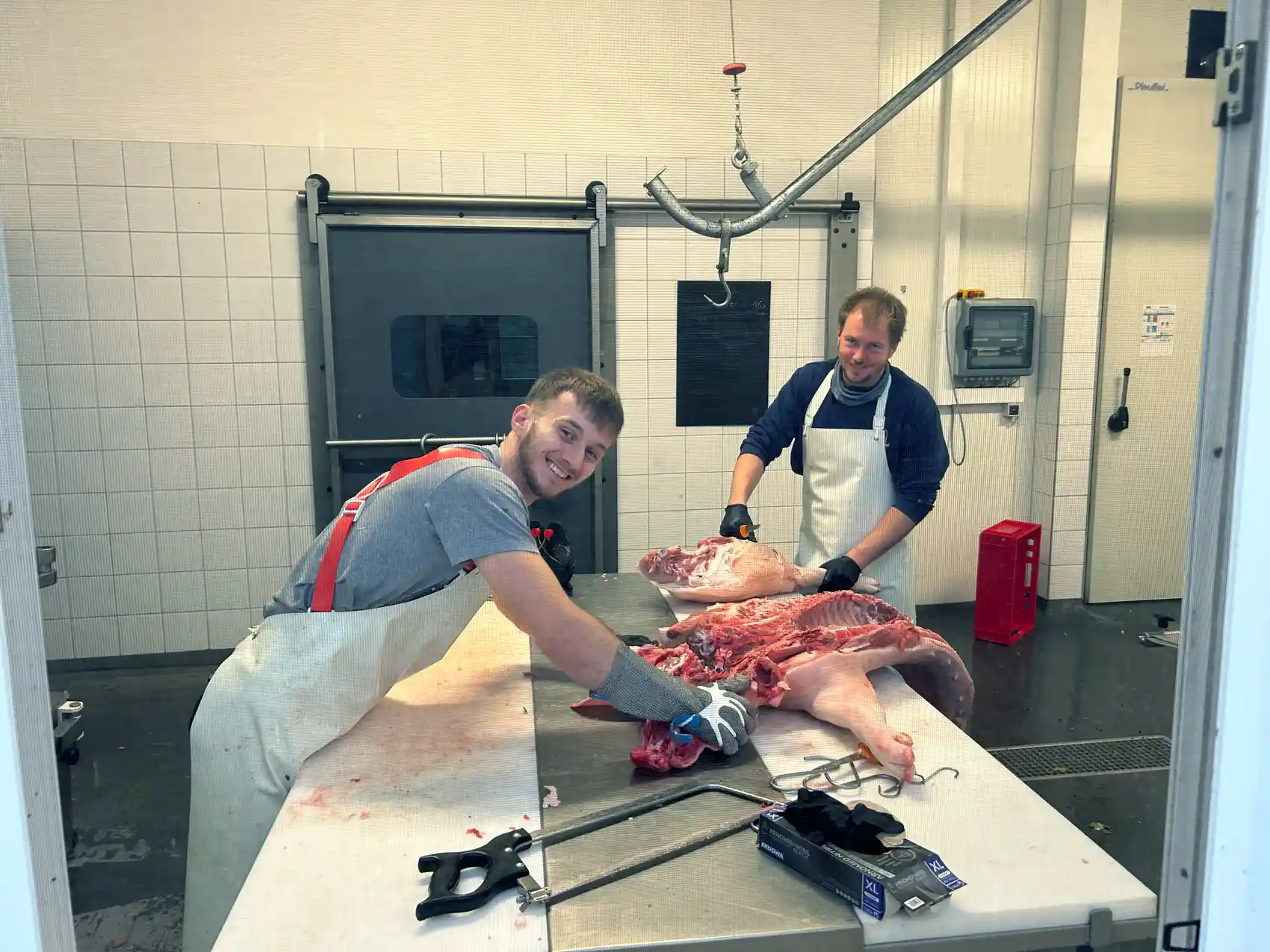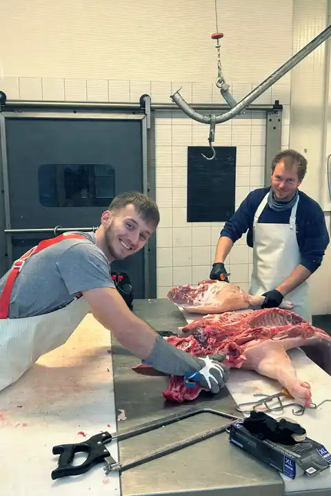 Außerdem bieten wir in der Hofmetzgerei Lohnschlachtung und -verarbeitung an. Direktvermarkter und Hobbyhalter können bei uns ihre Tiere schlachten und nach Absprache zerlegen und verarbeiten lassen. Hierbei behandeln wir die Tiere nach den individuellen Kundenwünschen mit genauso viel Sorgfalt, wie unsere eigenen. So können sie sicher sein, das Fleisch von genau ihrem Tier zurückzubekommen – entweder lose oder sorgsam verpackt. Ebenso veredeln wir Wild für die Jäger*innen aus der Region.