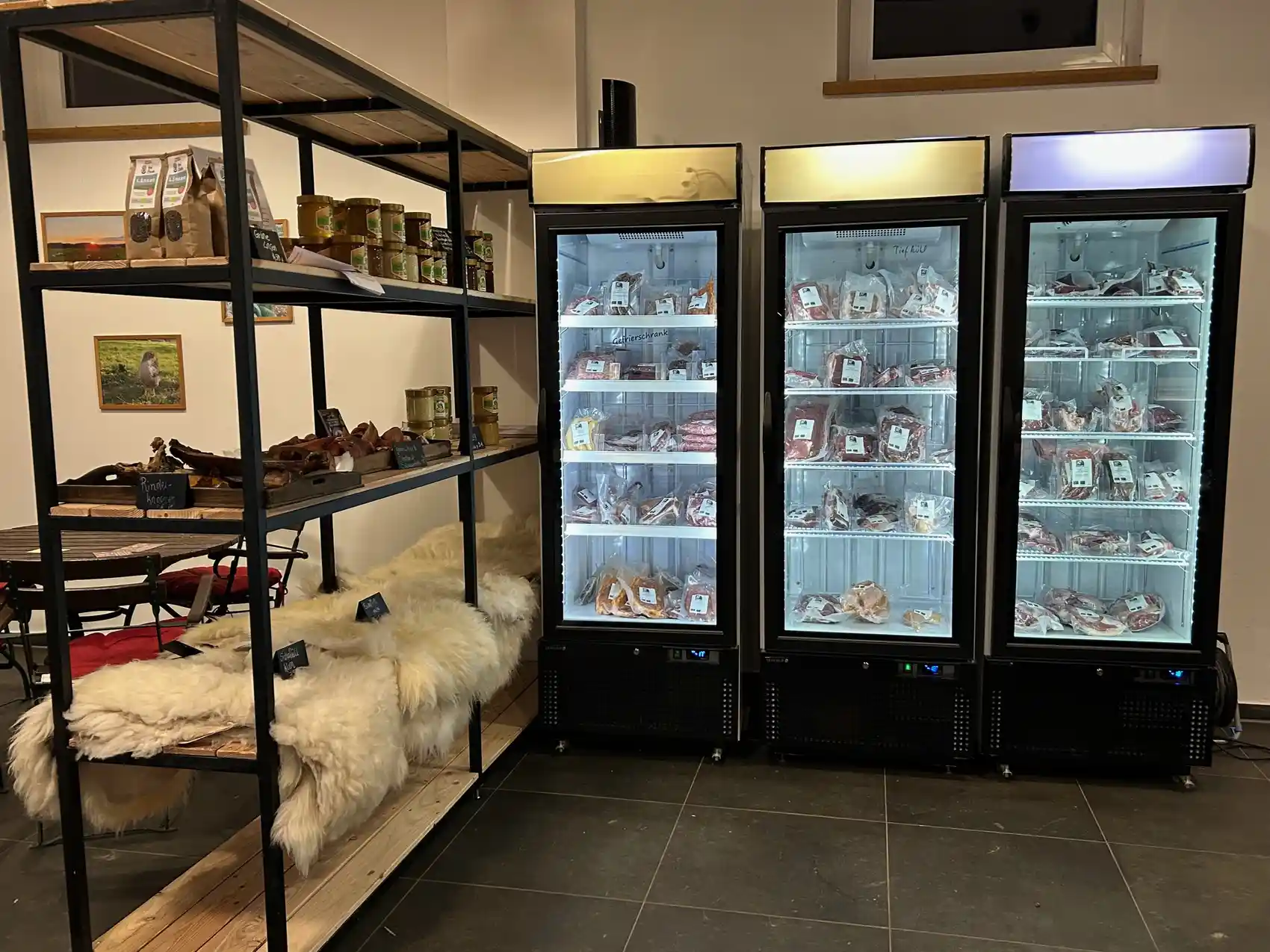 Sie finden hier frisches und tiefgefrorenes Fleisch wie zum Beispiel Bratwürstchen, Salami, Hackfleisch, Koteletts, Braten, Leber- und Schinkenwurst, Speck, Nackensteaks und vieles mehr.